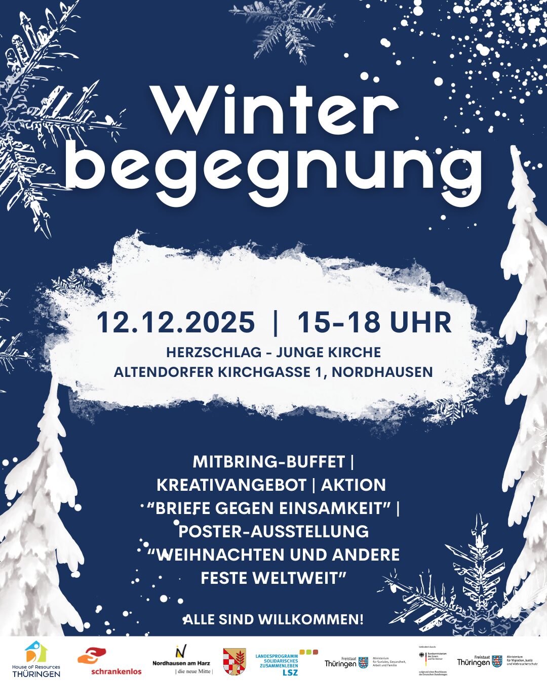Deshalb laden wir euch herzlich am 12.12.2025 von 15-18 Uhr zur Winterbegegnung in die Herzschlag-Kirche (Altendorfer Kirchgasse 1, Nordhausen) ein.